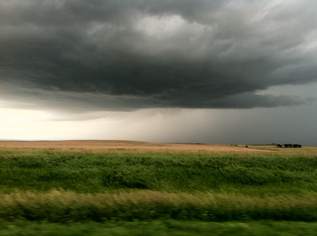 Then we arrived in Chadron, NE, where it was suddenly 90 degrees, and another death star dead ahead. We’d been hearing thunderstorm warnings on the weather radio, but now they were talking about tornados. Oddly, most of the drive, it had seemed that wind was at our back. And moreso as we approached Chadron.