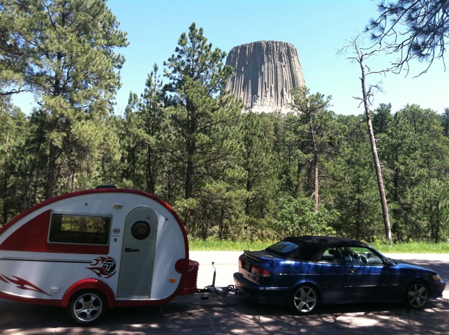 Wyoming has such a head-wind! I had it in 4th gear much of the time doing 53mph. Ugh. Back-roads to Devil’s Tower. 7-8% grades. Just stopped long enough for a photo since anything else requires un-hitching the trailer (no place to park up at the visitors center with a trailer in tow). Took a drive thru the campground. Nice, but no hookups or showers. Views of the tower from most sites. Also lots and lots of yipping prairie dogs. So cute.