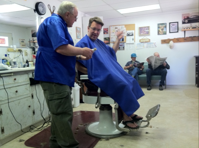 Deer Park Campground was so great, and we needed a break from driving, so we decided to spend a lazy day in Buffalo, WY lazing by the pool, doing laundry, and walking around town. Saw the Occidental Hotel, and Main Street. Got our hair cut at Russ’s Barbershop ($11). He passed his barbering exam in 1969 and has a collection on small-scale classic cars on shelves (he owns a ’61 Olds 98 he drives regularl)y. He pointed me to an autoshop that sells octane boost, since the highest you can find out here is 91. He (and the folks waiting for a cut) recommended Winchester’s for dinner. It’s so close to our campground, they’ve mowed a 1/4 mile path leading thru a meadow to it. Amazing prime rib, next to a “custom slaughtering” outfit.