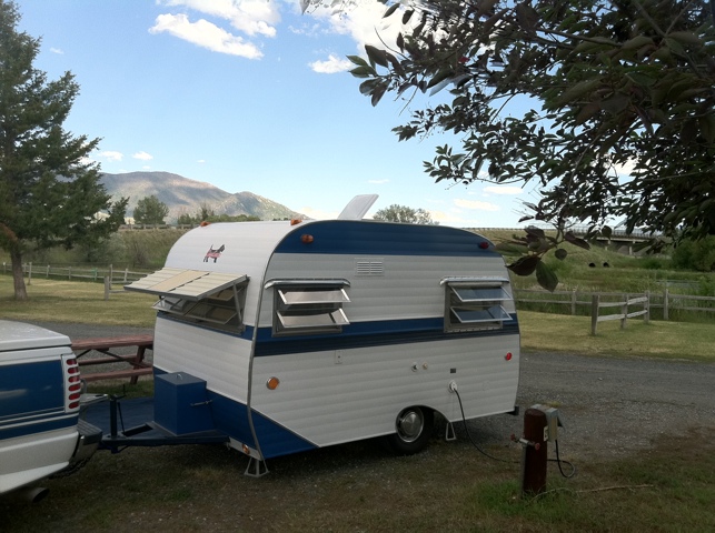 A couple with a 1970s Sero Scotty pulled in across the way. They’re on a 4-week adventure and just came from Glacier National Park. We talked for a while and now have a good idea of what we can do there. They’re heading to Mt. Rushmore, so we told them about our last great campground, and that park.