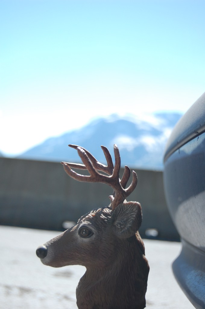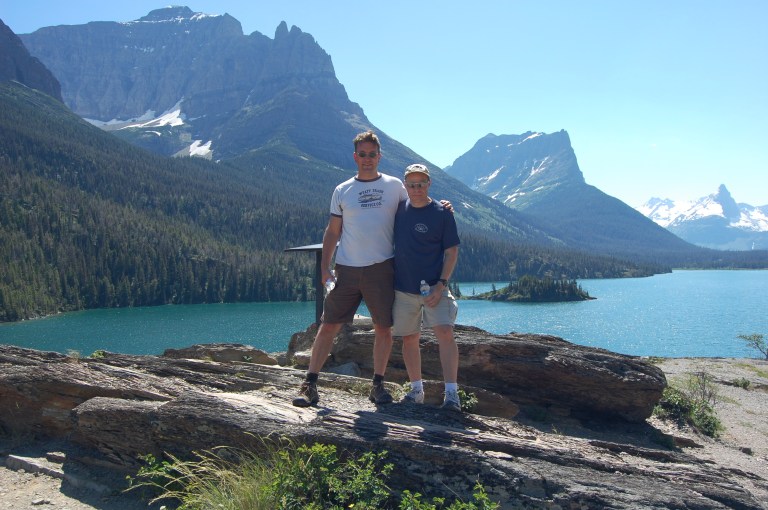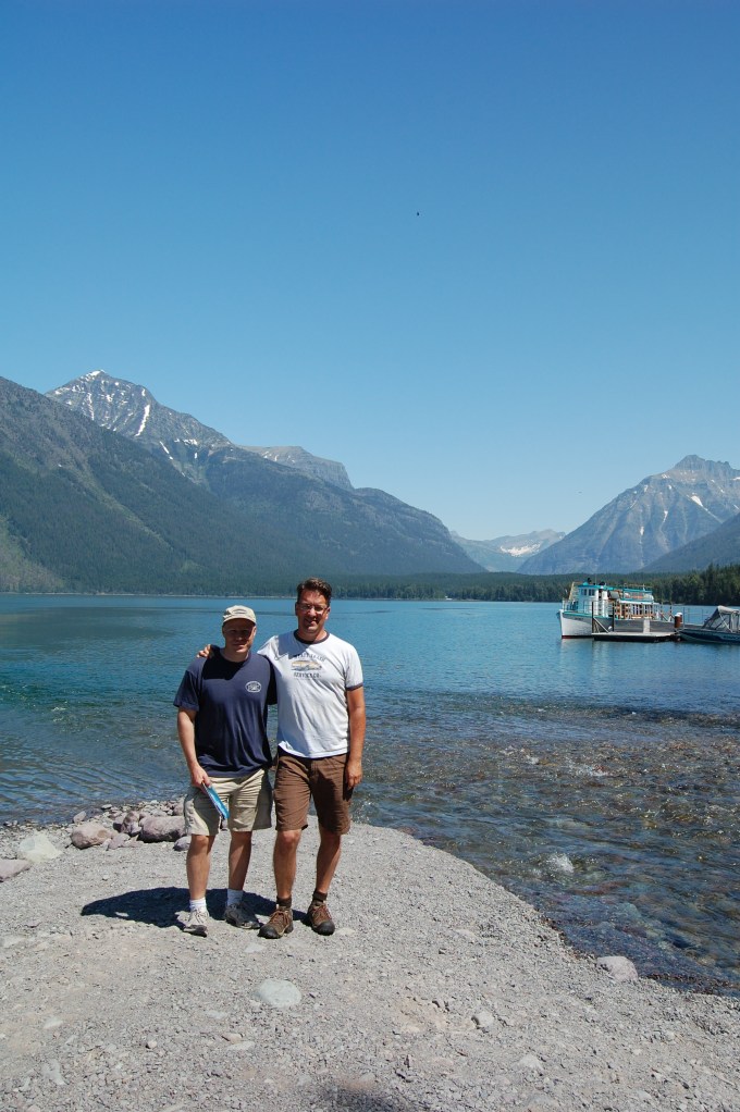 We asked the ranger to receommend a small hike, and she pointed to one on St. Mary lake, which we headed for – down the other side of the pass. More steep grades and the “Weeping Wall”, which showered all vehicles on the inland side with freezing doplets of refreshing water. St. Mary Lake was gorgeous. We went on to the next rest-stop to grab a granola bar and soda before making the 75-mile journey back to our campgound (back up and over, and on the other side of the divide). Saw some billy goats at Logan’s Pass, then another show-off in a construction site further down the road, creating traffic mayhem and each car stopped to take a picture whill the oncoming cars waited for the photo-happy convoy to clear so they could go down the single lane.