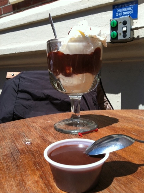I couldn’t let Dan eat alone, so I had just HAD to join him! π I even finished off the extra hot fudge.