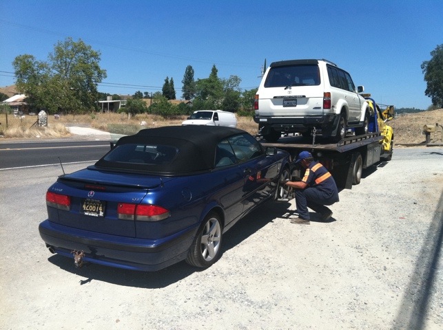 Waited almost 2 hours for the tow truck, which already had an SUV on the flatbed (and 2 passengers). They had burned up their transmission on Sonora Pass …