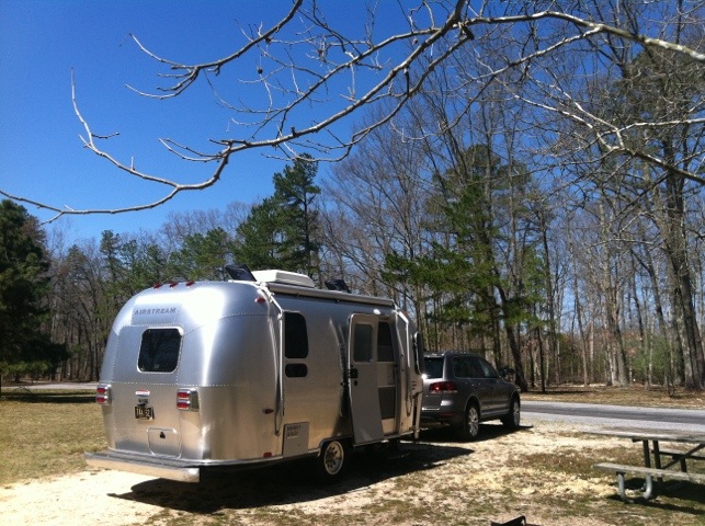 I’m camping at Allaire State Park in central NJ tonight to give Colonial Airstream’s installation of 120 watts of solar power a true test.