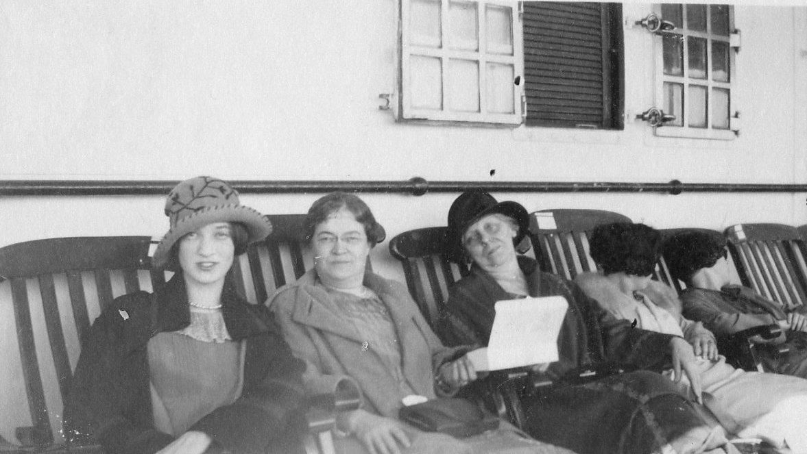 Lucile Heberle (my grandmother), Alma Heberle (her mother), and Julia Welch on the deck of the SS Fort St. George in 1925.