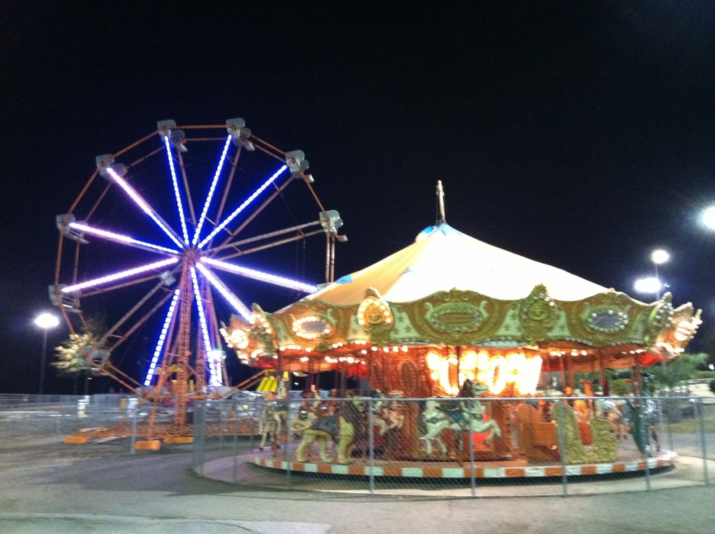Empty amusement park on a cold night. Bumper cars, then mini-golf accompanied by the sounds of I-95 and freight trains.