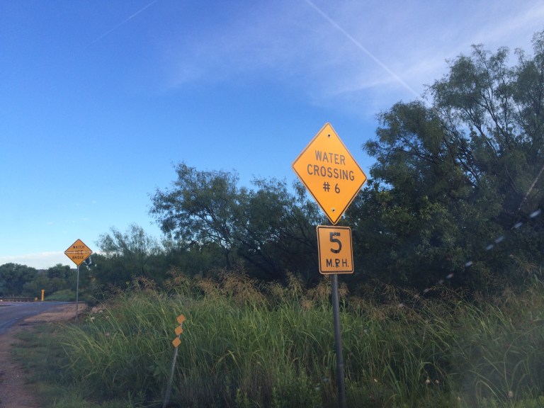 Headed out of the campground early, a cross roads were flooding was so common, they had signs like this. Numbered. Because there are lots of them.