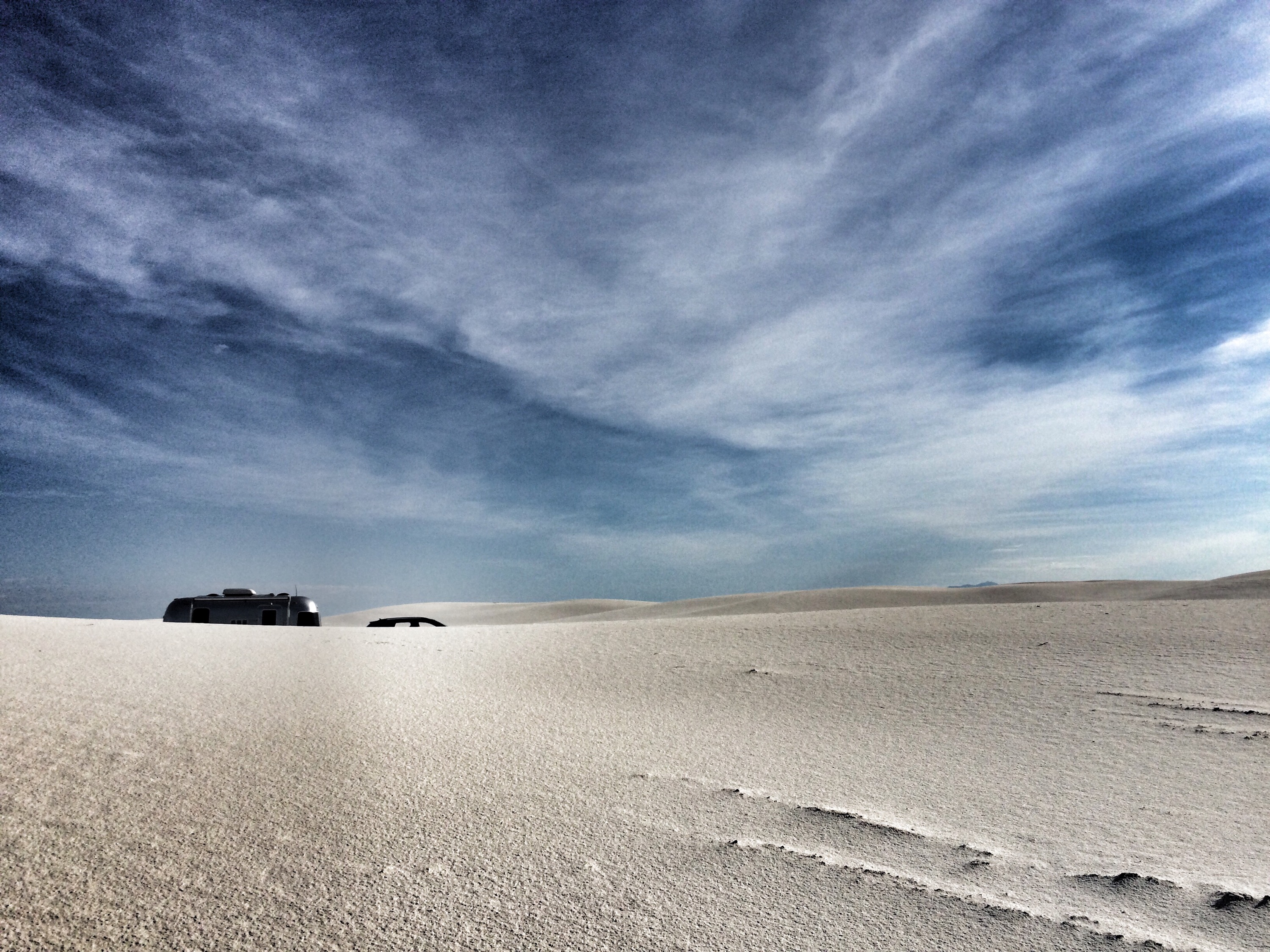 But the real reason I was camping there was to be close to White Sands National Monument to get in when it opened at 7 AM, when I knew the light across the Sands would be magical. The rain had made the white gypsum the consistency of Bisquick.