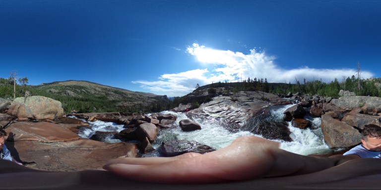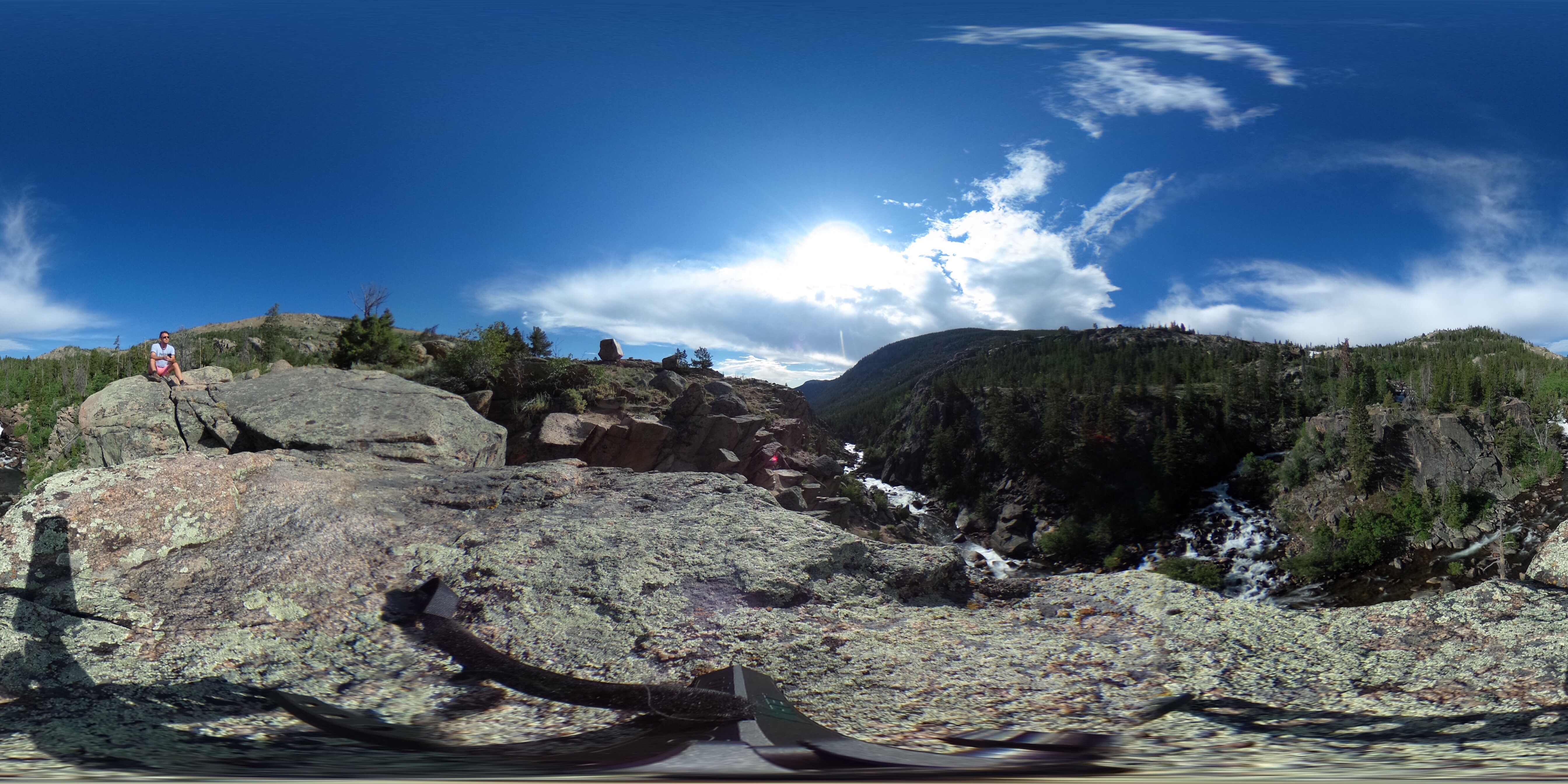 The last two shots has the camera precariously perched on rock outcroppings 100+ feet over the river. Can you find the camera in this photo?