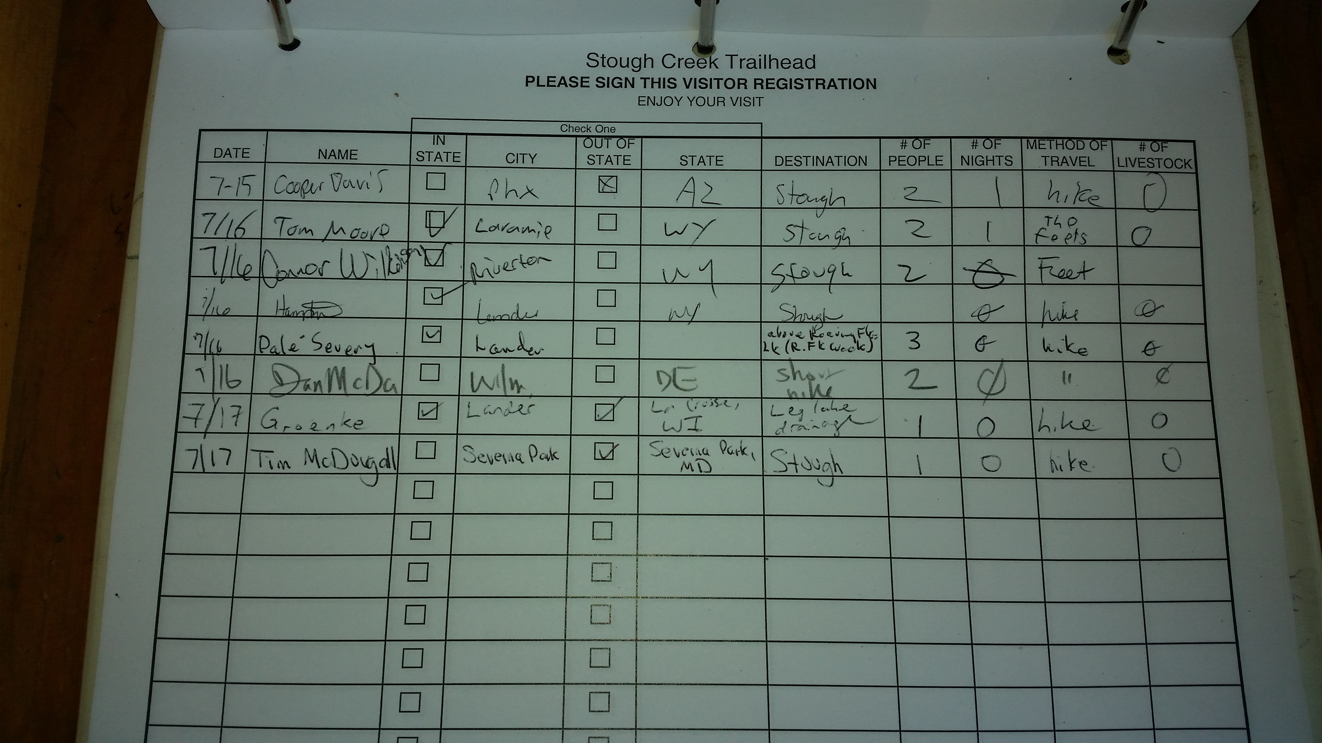 My favorite (only) brother Dan graciously dropped me off at the trailhead around 7 and planned to pick me up at 5. As you can see I’m already feeling the effects of the altitude by messing up the register entry.
