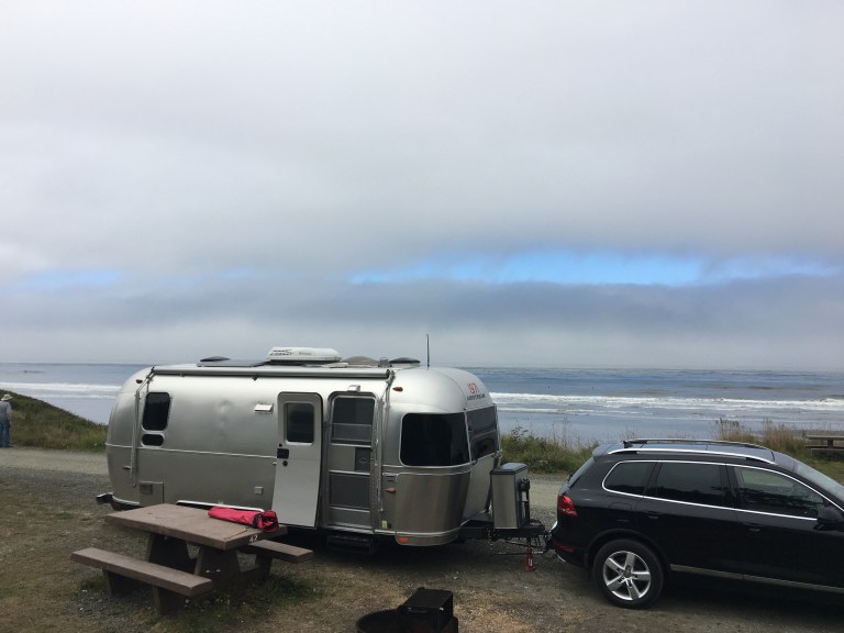 What I love about this campground is the simplicity. It’s a gravel road on a plateau overlooking the Pacific, with access to the beach and some picnic tables. Isn’t that all we really want?