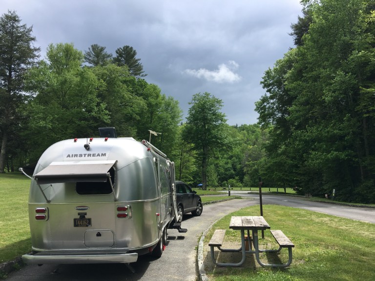 My next campsite was at Linville Falls, after a 28-mile, unmarked detour through Boone and Linville, NC (the Parkway is closed for repairs in that stretch). It’s early in the season, so it seems like I have the road, and campgrounds, all to myself.