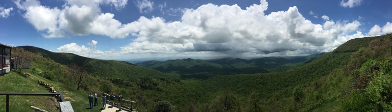 To get myself warmed up for a summer of travels, I’m taking a pre-Memorial Day trip down the length of the Blue Ridge Parkway. I’ve been at Mt. Pisgah the laser few days. And as I write this blog, my view is currently this…
