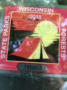 I arrived at Yellowstone Lake State Park and registered for a camp site. Wisconsin state parks are among a growing number of parks to require a park fee in addition to the camping fee: $11/day or $38 for the year. Since I might be here as long as 3 days, I bought the annual pass, which requires a sticker in my window.