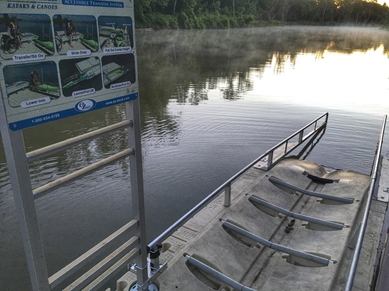No dead bodies here (see yesterday’s post). In fact, they have the coolest kayak-launch dock I’ever ever seen. Although designed for handi-capable folks, I can see it benefiting everyone. After you set your canoe/kayak on the rollers, you easily launch yourself into the water (of course, trying to avoid the dead bodies).