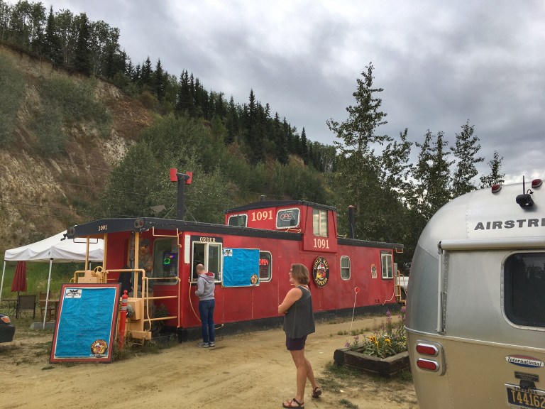 There were no spots available within the Riley Creek campground in Denali, but they recommended Denali Outdoor Center ten miles back up the road. $12 per person, per night, no hook-ups, but flush toilets and hot showers. And the view ain’t shabby, neither.