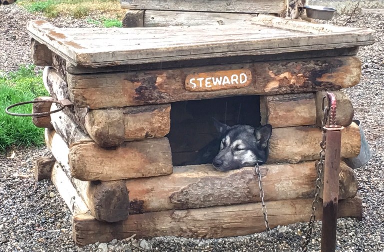 On the bus from the visitor center to the dogs, we were surrounded by Paula Dean look- and sound-alikes. One of them (more sound-, than look-alike), and her husband, thought the races needed to be spiced up with a little Jack Daniels. Shhh – it’s our little secret.