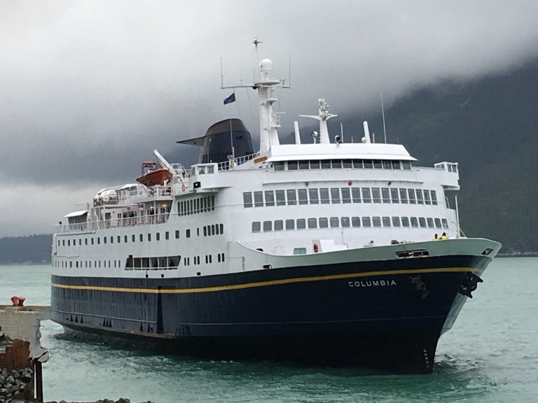 I spent the day doing final shopping, and using library WiFi before my appointment with the ferry Columbia at 3:45. At the ferry terminal, I learned that she would be late – a 9:45pm departure.