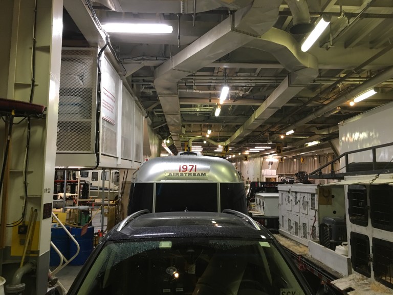 I turned off the propane, and was ushered on board through a door in the side. It was low tide, so the ramp was pretty steep.