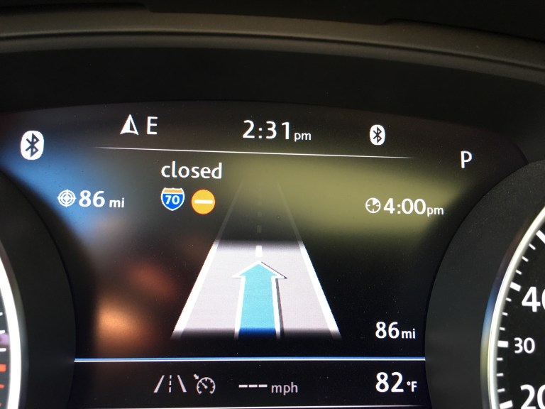 This is not the kind of Navigation warning you want to see as you approach Vail, Colorado, with no alternate routes.