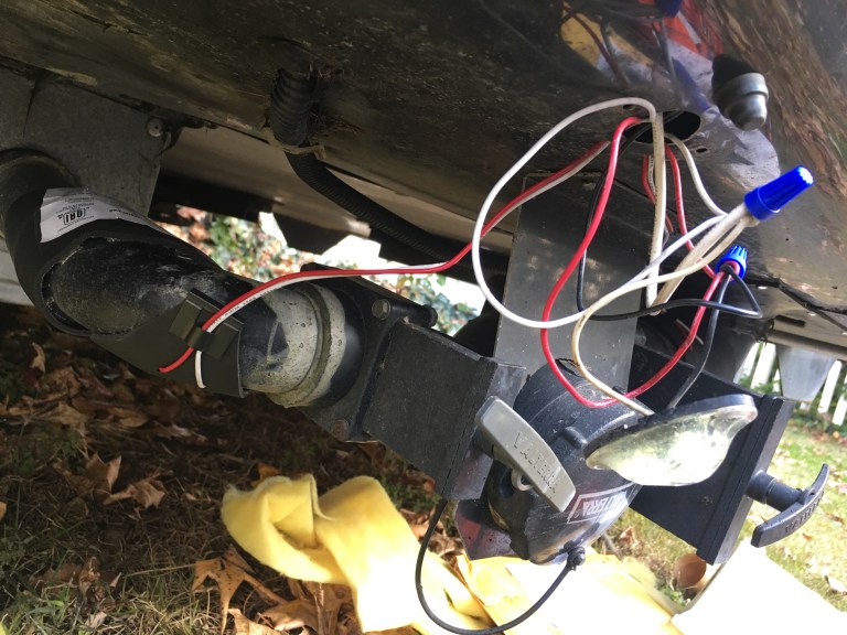 So, far I have not winterized the trailer. But that isn’t to say I haven’t prepared for this. Last Spring, I had tank heaters added to my fresh, grey, and black water tanks. I added insulation to the closets, and the floor beneath the front dinette. And insulated black-out shades for the upper windows, vents, and skylight. As an extra precaution, I installed two pipe heaters (grey & black pipes), wrapped in insulation, wired into the dump-valve light. Here’s that installation while it was in progress. It looks better now Dad, I promise.