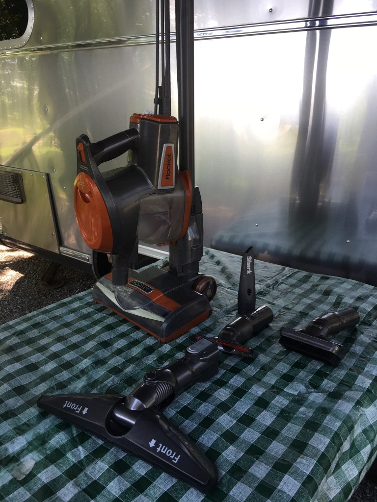 And finally, my vacuum. I finally found the perfect trailer vacuum. Beater brush for the carpet. Doubles as a car-vac. Bagless. Small enough to run on the inverter, but still powerful enough to do a good job. Introducing the Shark Rocket Ultra-Light.