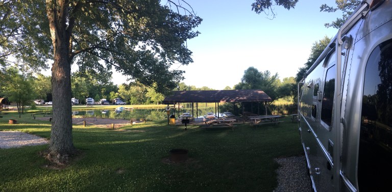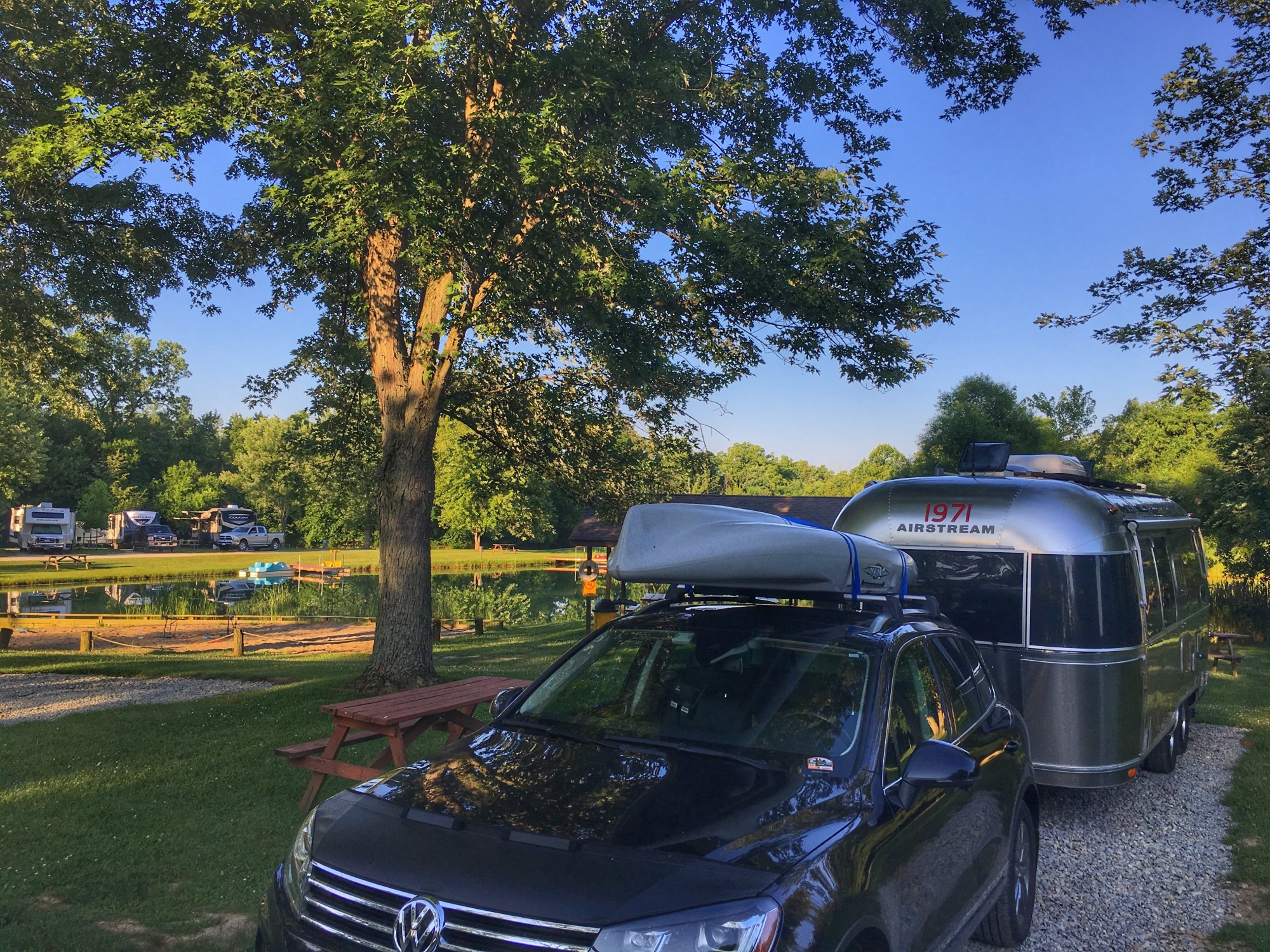 The 4pm cut-off for app reservations had passed, but Richmond Indiana’s KOA picked up the phone at 7:30 PM, were as friendly as could be, and said “come on over” (their office closes at 8pm). $42 later, I’m in a scenic water/electric (no sewer) site for $42. And they have a pool!
