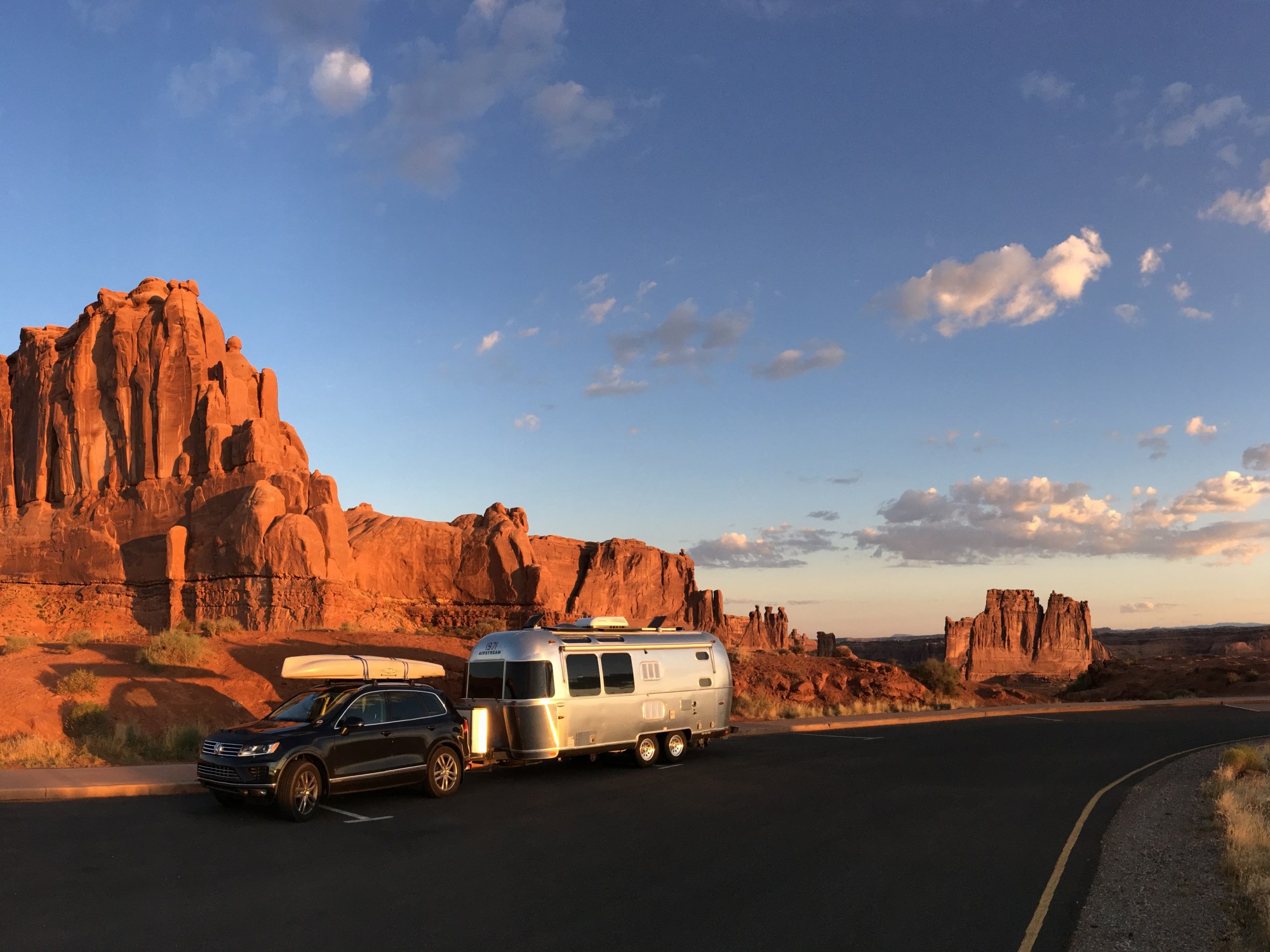 At 5:45, they start to glow at the campground.