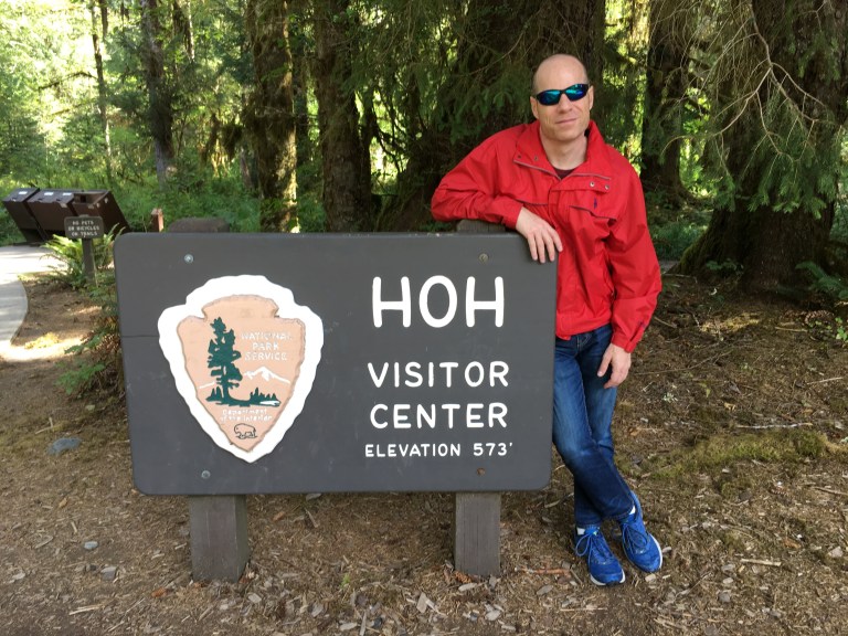 Next, I feel it’s my duty to look at the rain forest. I appreciate that they exist, and their purpose in our eco-system. Really, I do. I just don’t feel the need to camp in a wet densely-forested area. I take one photo of Glenn, at the Hoh visitor center.