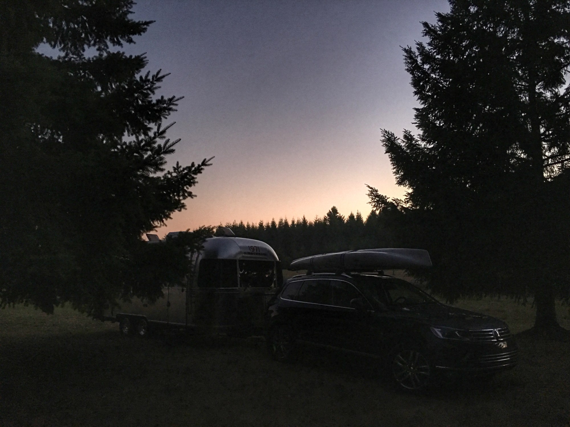 No photos to share of the reunion, but one last wistful shot of my front-yard campsite at mom and dad’s. Using the last few minutes of daylight to hook up for the long journey home.