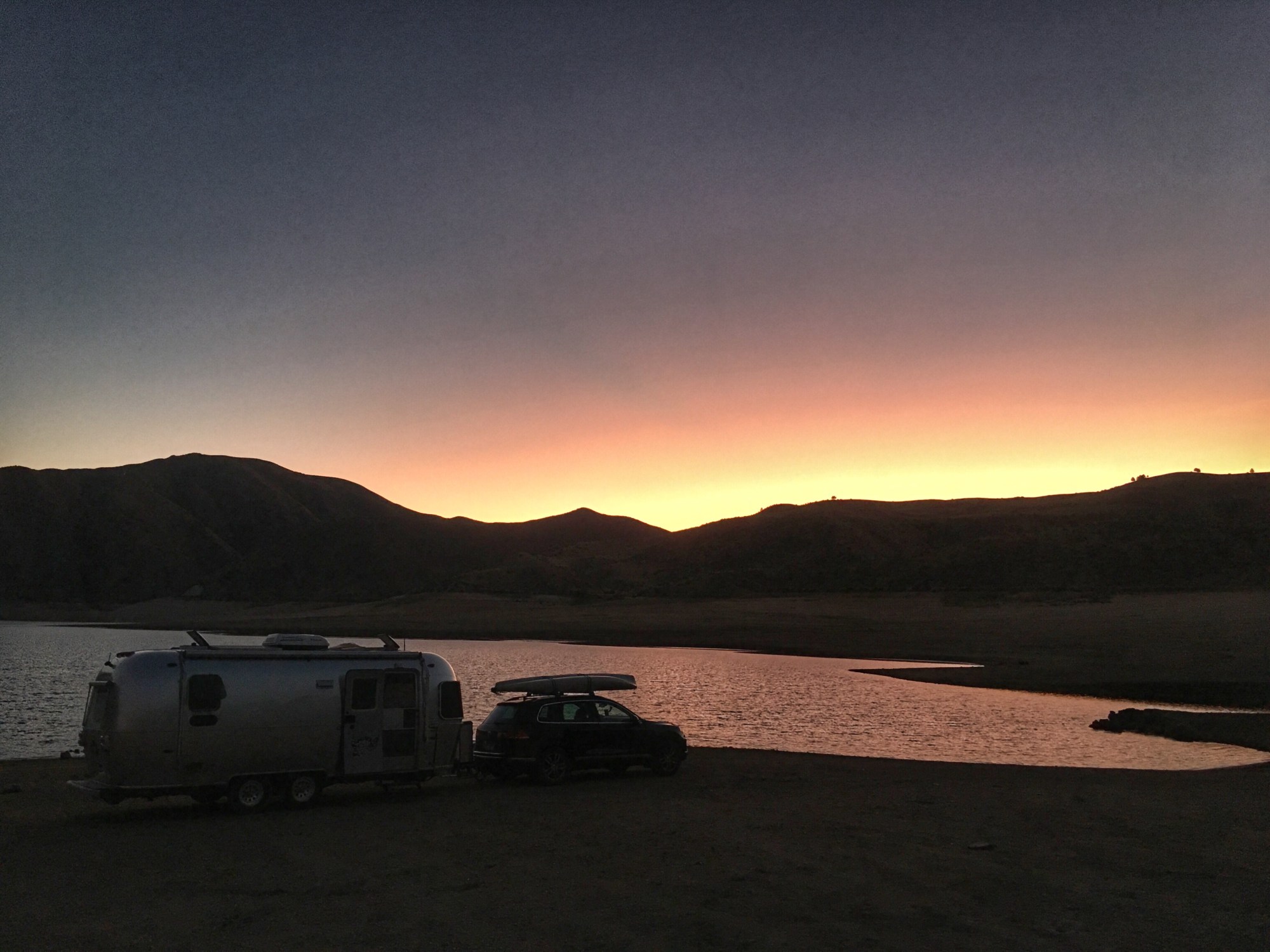Since the reservoir is low, the boat ramp is very long (and paved). Folks must camp a lot along the shore. There were fire rings and a relatively level, smooth, packed shoreline to drive onto. There was one other trailer camping near the water’s edge, and a few fisherman. By sundown, it was just one pother camper, and me.