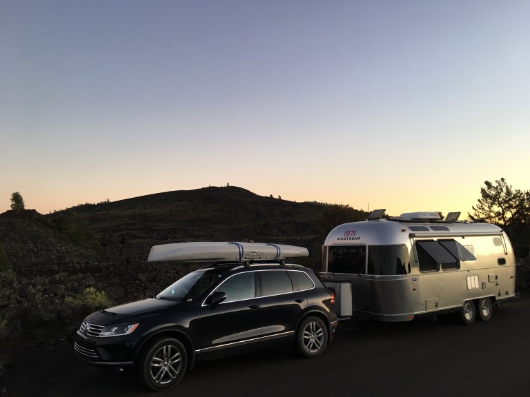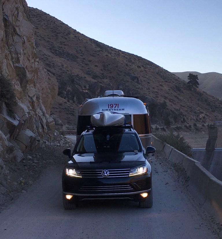 The drive in, and out, of the dispersed camping near Boise has a narrow spot on a ledge that reminds me of one of Frank DiBona’s Airstream PhotoShop masterpieces.