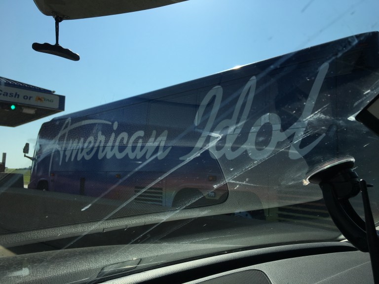 Later, while paying my $6 toll for the length of the Kansas Turnpike, I spied the American Idol bus.