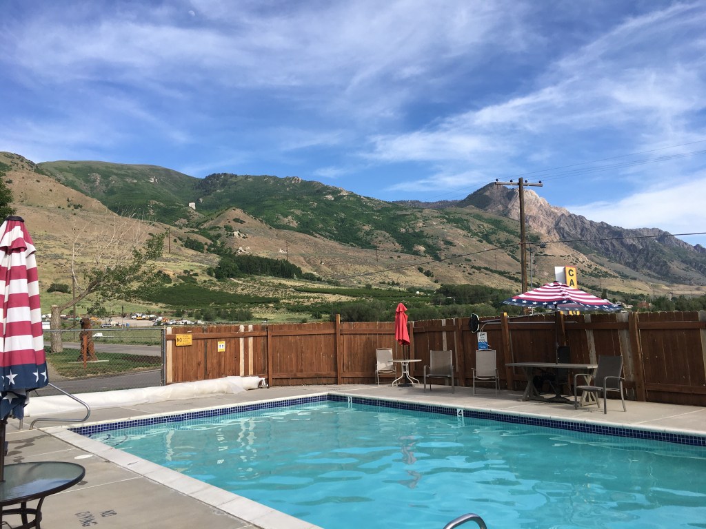 Today, I decided to treat myself to a campground with water, electric, sewer, and WiFi access, so I could regroup and plan out the next part of the trip. The Brigham, Utah KOA had that – and a POOL. An open pool.
