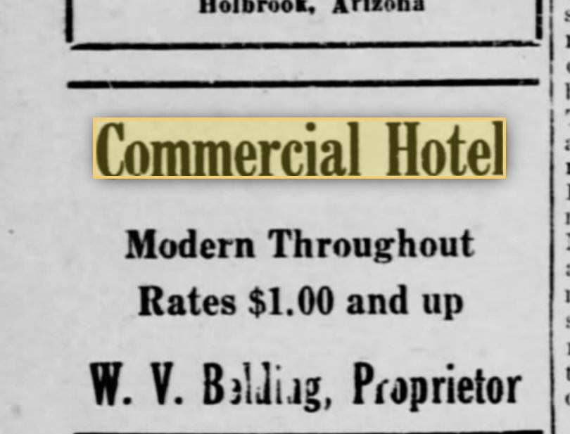At home, in that scrapbook, I’m sure there is a receipt from that stay. Maybe with an address. I don’t have that information. But while I’m camping here in Holbrook for a few days, I looked around for the hotel.