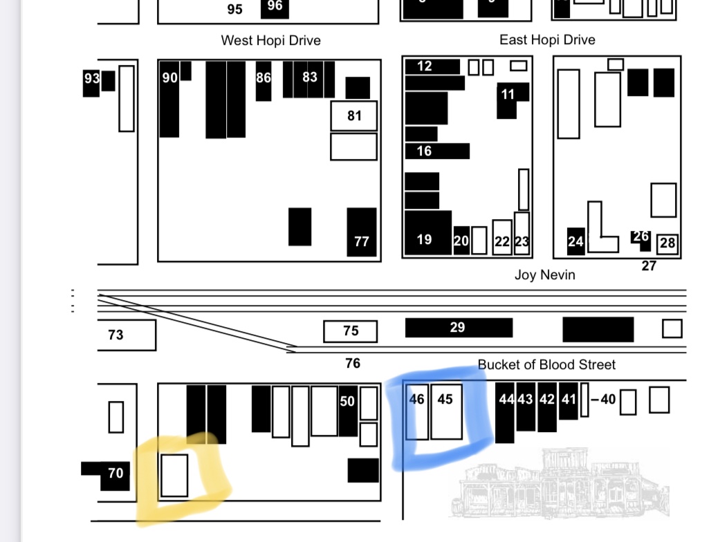 The Blue highlighted area is where I thought it was. The yellow is where it actually was. Across the street from the old Arizona Hotel )#70 on the map)